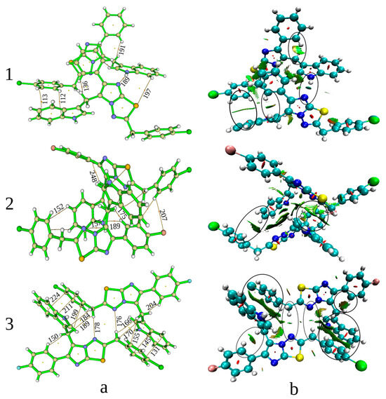 (a) QTAIM; (b) RDG analyses for the dimers of three compounds 1–3.