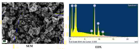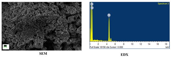 For this work, TiO2 and WO3 nanostructures were synthesized. All chemicals were used as procured. TiO2 nanoparticles were synthesized used a simple sol–gel procedure found elsewhere [17]. WO3 nanorods were synthesized by a hydrothermal method reported elsewhere [18]. The synthesized nanostructures were characterized by identifying the morphology using Scanning Electron Microscopy (SEM) and the elemental composition was confirmed using Energy Dispersive X-ray Analysis (EDX). Both Figure 1 and Figure 2 showed formation of nanosized structures over the area of study. The EDX graphs captured peaks corresponding to the elemental composition of the synthesized materials and a lack of other elements indicated an impurity-free composition.