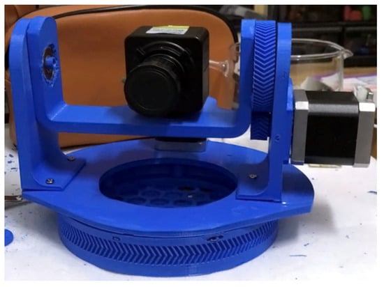 To allow the system to be versatile, a custom pan-tilt was designed and 3D-printed using Ultimaker; the design entailed two adjustable parts driven by motors connected to the Arduino. These two metrics represented the directions in which the pan-tilt would be responsible for steering the camera based on the Jetson Xavier commands, whether they were up, down, left, or right. Figure 3 and Figure 4 show the execution of the pan-tilt design.