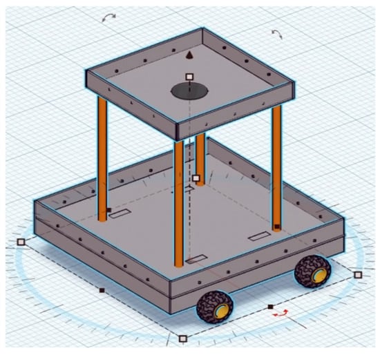 Due to the originality of the innovation, the robot chassis in Figure 5 had to be custom-designed to make sure it served the needs of the project with two compartments; the upper section holds the pan-tilt.