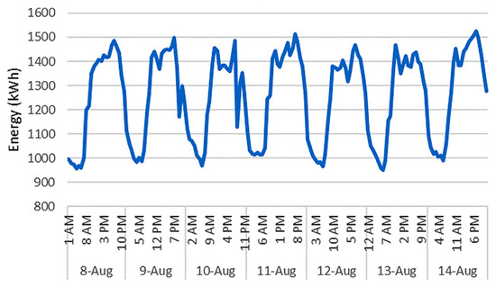 In addition, by focusing on a shorter time span, more specifically on a week in August (the peak-demand month of the year) the following diagram presented in Figure 5 was formed that shows the consumption curve during the week.