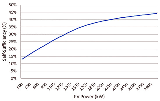 Figure 11. Annual self-sufficiency with respect to PV power.