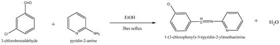 2.3. Synthesis of Schiff-Base Ligand—1-(3-Chlorophenyl)-N-(pyridine-2-yl)methanimine [CPPM]
