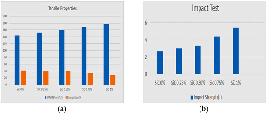 Mechanical properties of SiC-reinforced AA7050. (a) Tensile properties and (b) impact toughness.