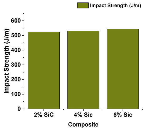 - The impact strength increased with increasing SiC concentration, reaching its highest point at 6% SiC, attributed to the reinforcement effect of SiC nanoparticles.