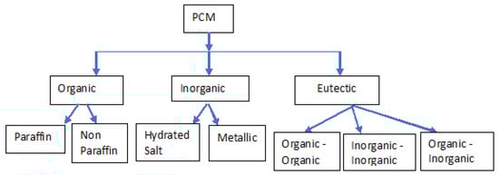 There are organic PCMs, inorganic PCMs and eutectics of organic and inorganic compounds, as shown in Figure 1.