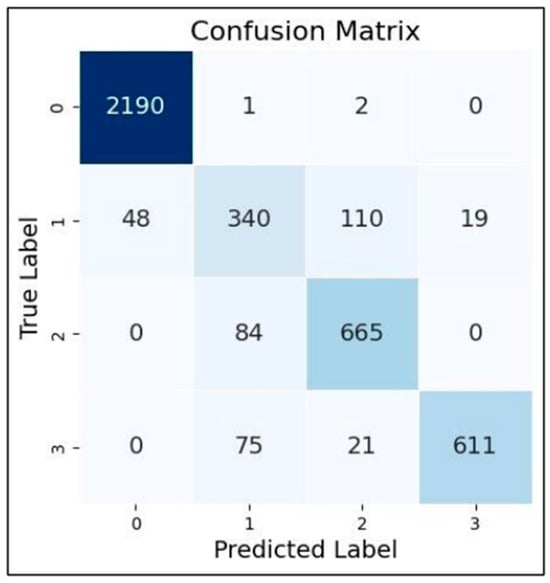 The calorie goal and macronutrient goal values are calculated using the above formulas and respective meal plans are computed. For example, to give the food for breakfast, only the foods that are within the range of the calorie goal and macronutrient goal are provided. The accuracy of the model was 92%. The class with the label “0,0,0” had the best outcomes, according to the report. Due to the small number of dinner-related items in the train dataset, dinner, or “0,0,1,” had the lowest accuracy. In the classes that we are interested in, breakfast, represented as “1,0,0”, produced the greatest outcomes. The result of using the random forest classifier is shown in the following Figure 5.