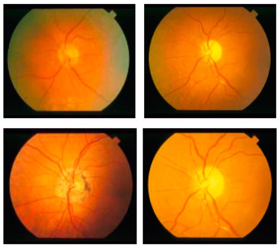 Researchers have used various datasets, including ORIGA, STARE, RIM-1 r2, and DRIVE, to study retinal diseases [16]. This research uses the publicly available datasets ORIGA, STARE, and REFUGE for training and testing the model. A total of 70% of the dataset is allocated for training, while 30% is allocated for testing. The ORIGA dataset contains 650 retinal images, comprising 482 images of healthy retinas and 168 images of retinas affected by glaucoma, as in Figure 2, while the STARE dataset has 50 images of glaucoma and 31 images of normal eye conditions (shown in Figure 3). The REFUGE dataset has 1200 retinal images, including 1080 healthy and 120 affected retinas images, as shown in Figure 4.