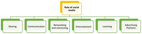 Social media is used for connecting and networking with people around the globe through Facebook, LinkedIn, Twitter, Instagram, etc. Networking involves professional as well as personal connections via different social media platforms [2] through the sharing of content, stories, photos, video messages, etc. A crucial component of the innovation process is the use of social media to form new perspectives on established innovations [3]. Figure 1 explains the role of social media.