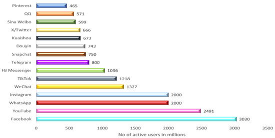The National White Collar Crime Center’s “Criminal Use of Social Media” white paper asserts that social media’s recent emergence has drastically changed the communication landscape. Every day, millions of people use social media platforms, including Instagram, Facebook, LinkedIn, YouTube, and Twitter. Through these platforms, individuals communicate with one another. People use these channels for everyday communication inside the public sector, as well as for advertising and hiring new staff. Figure 2 displays Statista’s data on the most widely used social media networks as of October 2023 [21], sorted by the number of monthly active users.
