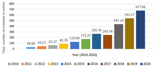 Total number of malware cases in the recent ten years [27].