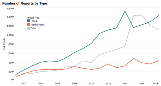 Identity theft complaints from 2002 to 2018 [21].
