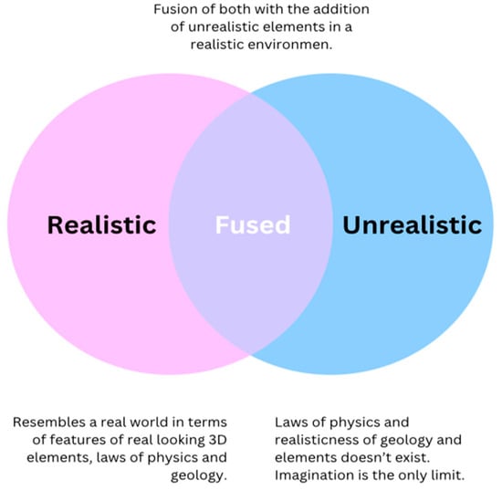 Users can engage with an environment personalized for them and hence feel that they are living in their world, and they have control over their lives. The metaverse allows three types of environments, realistic, unrealistic, and fused environments. The realistic metaverse reflects the real world in terms of geography, laws of physics, and the three-dimensional elements. This includes having a setting of exact life-like recreations of places and elements in our world or a completely different setting that remains faithful to our history, geography, and laws of physics such as gravity and speed of various elements. An unrealistic environment contains no limits such as the laws of physics and beings found on earth. A fused environment adds elements of an unrealistic environment to a realistic environment, such as many fantasy worlds like wizarding worlds, superheroes, dragons, etc. Additionally, these settings can be put behind a paywall and treated as a virtual travel destination and provide personalized virtual parks, theatres, gyms, etc., suiting each person.