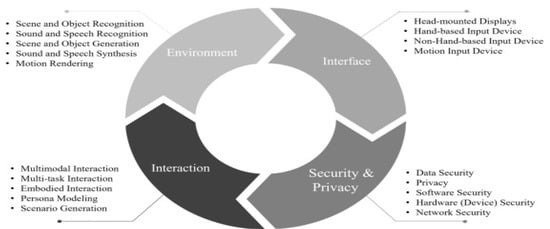 - Mozumder, M.A.I.; Sheeraz, M.M.; Athar, A.; Aich, S.; Kim, H.C. Overview: Technology roadmap of the future trend of metaverse based on IoT, blockchain, AI technique, and medical domain metaverse activity. In Proceedings of the 2022 24th International Conference on Advanced Communication Technology, Pyeongchang-gun, Republic of Korea, 13–16 February 2022; pp. 256–261. [Google Scholar]