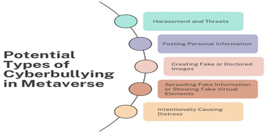 - Upadhyay, U.; Kumar, A.; Sharma, G.; Gupta, B.B.; Alhalabi, W.A.; Arya, V.; Chui, K.T. Cyberbullying in the Metaverse: A Prescriptive Perception on Global Information Systems for User Protection. J. Glob. Inf. Manag. 2023, 31, 1–25. [Google Scholar] [CrossRef]