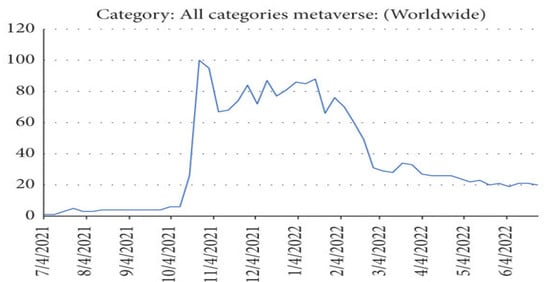 Since the World Wide Web (www) was established by Tim Berners-Lee in 1989, the internet has undergone substantial advancements. A more recent creation that utilizes the internet is the “Metaverse”. Interest in the metaverse increased dramatically after some news announcements were made. The spike in metaverse-related queries is shown in Graph 3, which was obtained from Google Trends Data [].