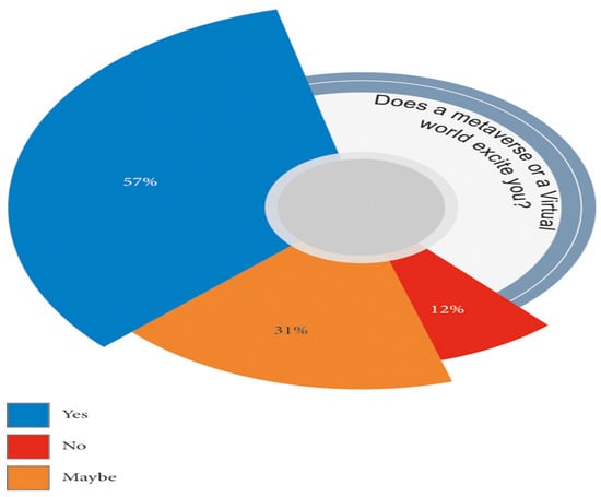 The metaverse may or may not be worth the hype, and people’s perspectives on this matter can differ greatly. The solution depends on several variables, including unique viewpoints, expectations, and particular use cases. Figure 10 below shows a pie chart of a statistical result asking people if they are excited about the idea of a virtual world, i.e., the metaverse.