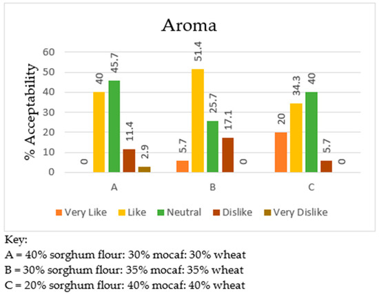 Aroma acceptance chart of composite flour wet noodles.