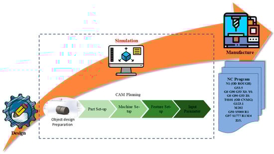 One expects a product to function in accordance with its purpose. As a result, a product needs to be able to meet the design requirements that are required specifications. A product may fail due to an improper machining procedure. To improve the degree of success and the accuracy of the product produced, it is therefore essential to validate the machining process prior to production. Software is one form of technology that can be used to carry out the simulation process. The software verifies a model before production [10]. Reduced material waste during the machining process, optimal tool utilization, minimized program errors that increase the chance of collisions, preservation of tool life, lower production costs and times, and comparison of various machine settings are some benefits of simulating the machining process, detecting interference between moving and static parts [11,12].