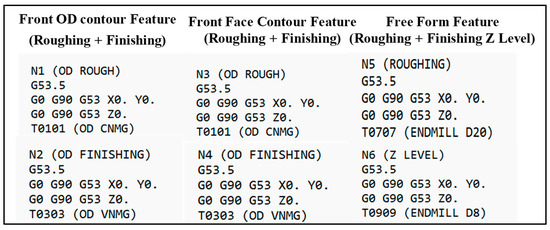 Example of G-code block of machining process simulation results for each feature.