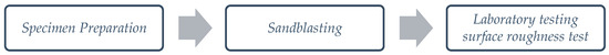 Grit blasting uses very fine sand with particle sizes following ISO 9001 standards, specifically 80 mesh, with a maximum profile height of 1.5 m for the specimen (Figure 2). The use of this grit results in finer abrasion, providing a smoother and more even surface for the specimen. In the first spraying phase, grit is employed to clean off deposits such as scale, oil, and rust. Subsequent sprayings utilize the grit for surface smoothing and leveling (Figure 3).