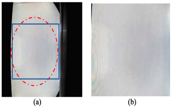 The powder bed images were captured with a resolution of 640 × 480 pixels. This generated 9426 powder bed images. Some images were captured under poor lighting conditions, resulting in 912 images being manually removed by the authors of the dataset. The dataset was manually labelled into two categories for binary classification: OK and DEF [4]. The OK class with 7808 images was populated with images that had no PBDs, and the DEF class with 706 images contained images where the powder bed had defects such as clumps, foreign bodies, etc. Figure 1a shows an image before and Figure 1b shows an image after pre-processing.