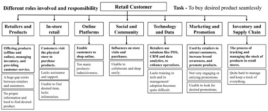 Because of the rise in e-commerce, traditional stores now have to deal with a digital gap. Studies also suggest that digitalization has changed traditional retail, and to keep up with changing consumer behaviors, retailers need to digitize [10]. It is difficult for traditional shopping to give customers a good experience. A real-world study has discovered issues with product availability, service quality, and shopping in general [11]. Other issues causing customer dissatisfaction include retailer-centric practices and dissatisfaction [8], limited in-store shopping options [9], the absence of personalized suggestions, in-store buying difficulties [8], limited community involvement, and geographical limitations [9].