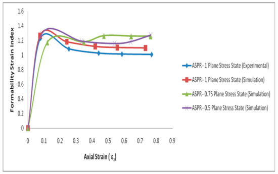 Formability stress index vs. axial strain (AR_1, 0.75, 0.5).
