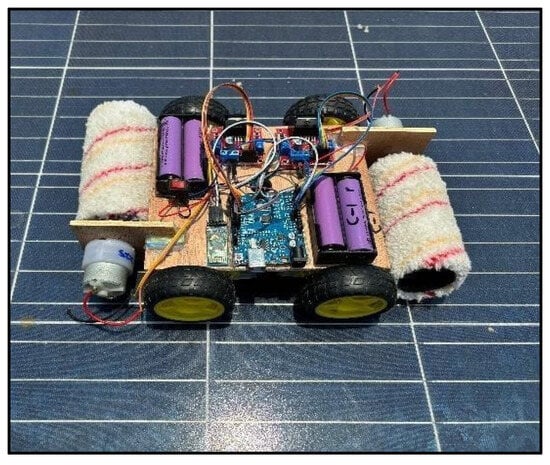The solution to this challenge will be accomplished with fossil fuels and renewable energy sources [,,,,,,,]. Focusing on fossil fuels results in more energy production, along with increased pollution-causing emissions. To shift the source of energy production from fossil fuels, the world is focusing on renewable energy sources, and, prominently, on solar energy. It is the most abundant energy resource available, although the earth is far away from the sun. In the following, Section 2 will explain the design, control, and operation of the proposed WAC, along with other related robots. Section 3 will discuss the outcomes and performance, and Section 4 will present the conclusion of this paper.