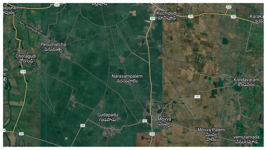 The research field is in the regions of Penumatcha, Narapalem, Kondavaram, and Pedamuttevi (Figure 1). Krishna District, located in Andhra Pradesh, India, exhibits an average altitude of 9 m and has a tropical climate.
