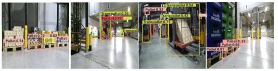 These results indicate that our model performs well across all classes, with A particularly strong performance on transpallet and forklift detection. The lower AP for Pallets may be attributed to their high frequency in the dataset.