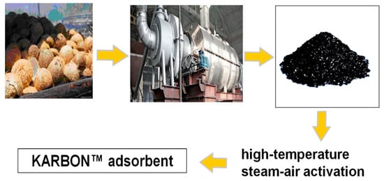 Activated carbon from Chemviron Carbon (Feluy, Belgium), Donau Carbon (Frankfurt am Main, Germany), Calgon Carbon (Pittsburgh, USA), and the Kureha Corporation (Tokyo, Japan) has found the greatest use globally [], where the starting materials of the carbon adsorbents are lignite, coconut shell, and nut shell.