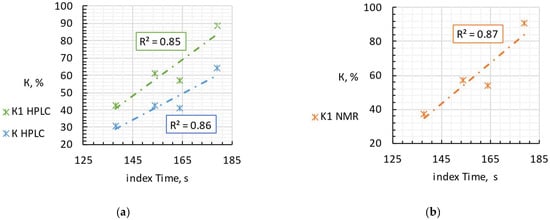 10]). We took samples with the lowest, highest and closest to average Time indexes, which were of the greatest interest for evaluation using HPLC and NMR.