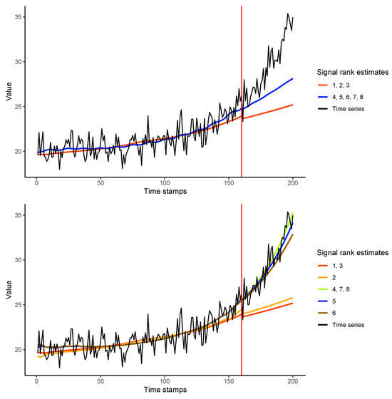 7], it has been shown, through several examples, that the error in trend extraction increases slightly when the rank estimation is exceeded slightly. In this paper, we will conduct a more comprehensive study and also evaluate the accuracy of the prediction.