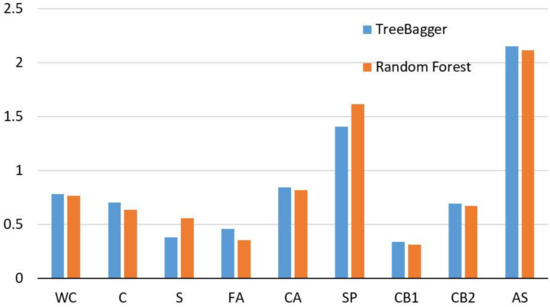- m random variables were chosen from p possible variables (with the difference that with the TreeBagger algorithm the number of random variables is equal to the total number of variables, while with the Random Forest model that number is less than the total number of variables).