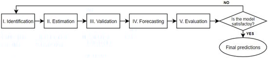 The adequacy of the estimated models was assessed using the autocorrelation in the model residuals through the Ljung–Box Q statistic [10]. If the test reveals that a substantial amount of residual autocorrelation persists in the estimated models, the model is considered invalid, and returning to the Identification step is necessary.