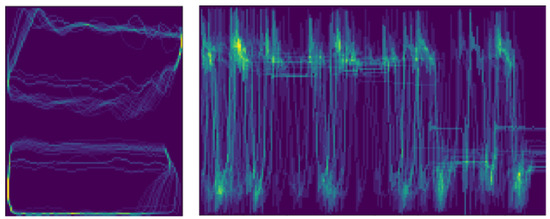 Representative images distributed over time. Dynacard image of 120 × 100 pixels on the left and valve test image of 120 × 200 pixels on the right. Each image source represents a different modality of the measured data.