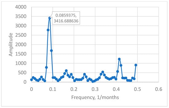 12]. The authors also analyzed monthly birth time series in Canada and the United States of America from 1991 to 2000. For both countries, the power spectrum obtained using the Fast Fourier Transform (FFT) had a strong peak at a frequency of 1 year