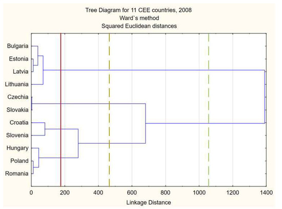 Dendrogram for eleven Central and Eastern European countries, 2008.