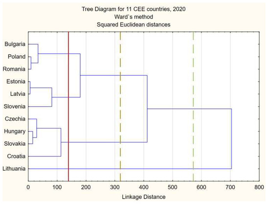 Dendrogram for eleven Central and Eastern European countries, 2020.
