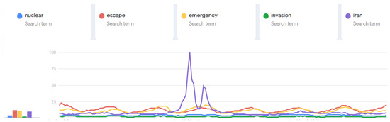 In other words, to classify news as fake, it is not enough to detect only one or two mismatches between the prediction(s) and the real observations related to one or two keywords. Such an occurrence might raise concern or even suspicion. To draw more solid conclusions, the analysis should be reinforced by using additional keywords and, if possible, more predictions. As a basic principle, a testing time between 56 and 63 min (7–8 data points) and 3 to 6 keywords could provide reliable information for the early detection of fake news. Furthermore, additional quantitative analyses involving different countries and/or different sampling frequencies (e.g., hourly or daily frequencies) can lead to more robust conclusions. In summary, an ideal data retrieval and analytic setup should involve the following key factors: 7–8 predictions, 3 to 6 keywords, different countries, and different sampling frequencies (e.g., hourly or daily data). A case study situation is reported in Figure 3. The fake news is clearly noticeable by visually inspecting the plot. Finally, in Figure 4, an anomaly detected for the word ’Iran’ has been identified by the model. However, such behavior is substantiated by at least three events that occurred in Iran on 9 January 2024: (1) a significant fire and explosion, possibly caused by a gas leak, injured 53 people at a cosmetics factory near the Iranian capital of Tehran; (2) a wave of protests swept across multiple cities in Iran on January 9, as retired government employees and residents voiced their grievances and demands; in Yazd, Central Iran, retired government employees gathered in front of the provincial governorate, demanding higher pensions and basic rights in line with the soaring costs of living and the regime’s laws; (3) news emerged related to the fact that Iran accused Israel of “genocide” against the Palestinians in Gaza, which might have triggered a widespread discussion over the internet. Therefore, it must be cautioned that not all anomalies are fake news. For this reason, the quantitative results provided by the hybrid AI–statistical model presented here should always be extensively discussed by analysts.