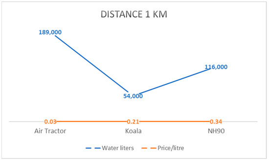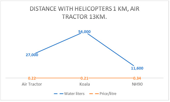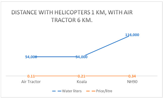 The examination persisted through to the third scenario, wherein the Air Tractor was tasked with procuring water from a distance of 13 km, juxtaposed with the helicopters, which sourced water from an additional distance of 1 km. At this juncture, it was observed that the water production capacity of the Air Tractor had diminished to merely half of the yield synonymous with the Koala. Concurrently, the cost per liter of water facilitated by the Air Tractor escalated to parity with that of the water liter produced by the Koala helicopter.
