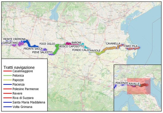 Surveyed daily water depth collected at each critical section and river discharge data recorded at each monitoring section of the river Po River derived from the monitoring network. Data source: www.agenziapo.it.