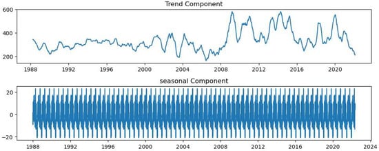Water depth time series decomposition. Trend and seasonal components revealed through additive seasonal decomposition offer insights into temporal dynamics.