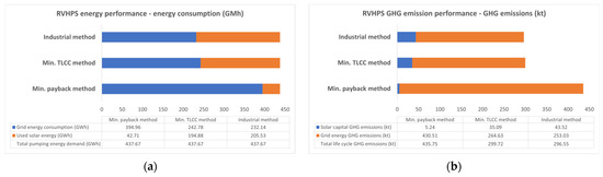 Energy and GHG emission performance of the three methods for RVHPS: (a) Results of energy performance; (b) Results of GHG emission performance.