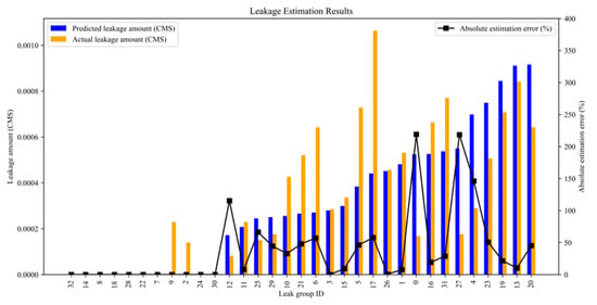 As shown in Figure 3, 113 out of the 118 leaks simulated are localized to their respective leak groups. Figure 4 shows the leak estimation error for each leak group.