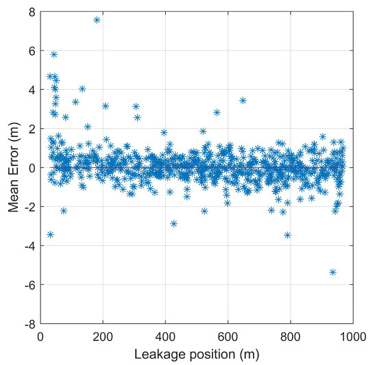 Leak localisation along the pipeline in terms of bias, i.e., the difference between the real location and the predicted one.