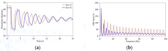 (a) Time; (b) frequency domain pressure signals of Test #1 and Test #2.