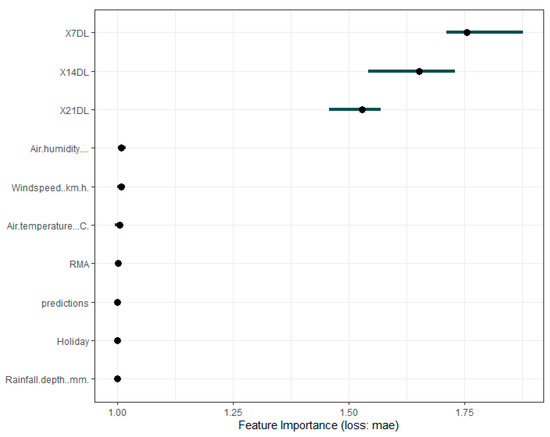 The application of a robust tool for short- and long-term water forecasting has continued to grow in importance for water utility planning, operations, and management of precious water resources. RF has been cited as a very versatile and accurate ML algorithm for water demand prediction, with capabilities of iterative improvement to offer powerful predictive analytic capabilities. In its application for water demand forecasting across ten DMAs, our model provided consistently reliable predictions and insight into the significance of each explanatory variable. This information can enhance the model’s forecasting performance and guide utilities on which variables are crucial to monitor. As an established algorithm with relatively simple implementation, RF offers comprehensive capabilities in addressing challenges for short-term water demand forecasting.