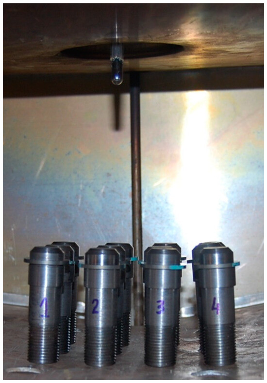 - The lower clamps together with the rings were placed in a heating module (Figure 6). The operating temperature was adjusted to 165 °C and the heating module was switched on. The temperature was controlled with a mercury thermometer. Once the operating temperature was reached, it was held for 30 min and the heating module was switched off. After reaching room temperature, the lower clamps together with the rings were removed from the heating module.
